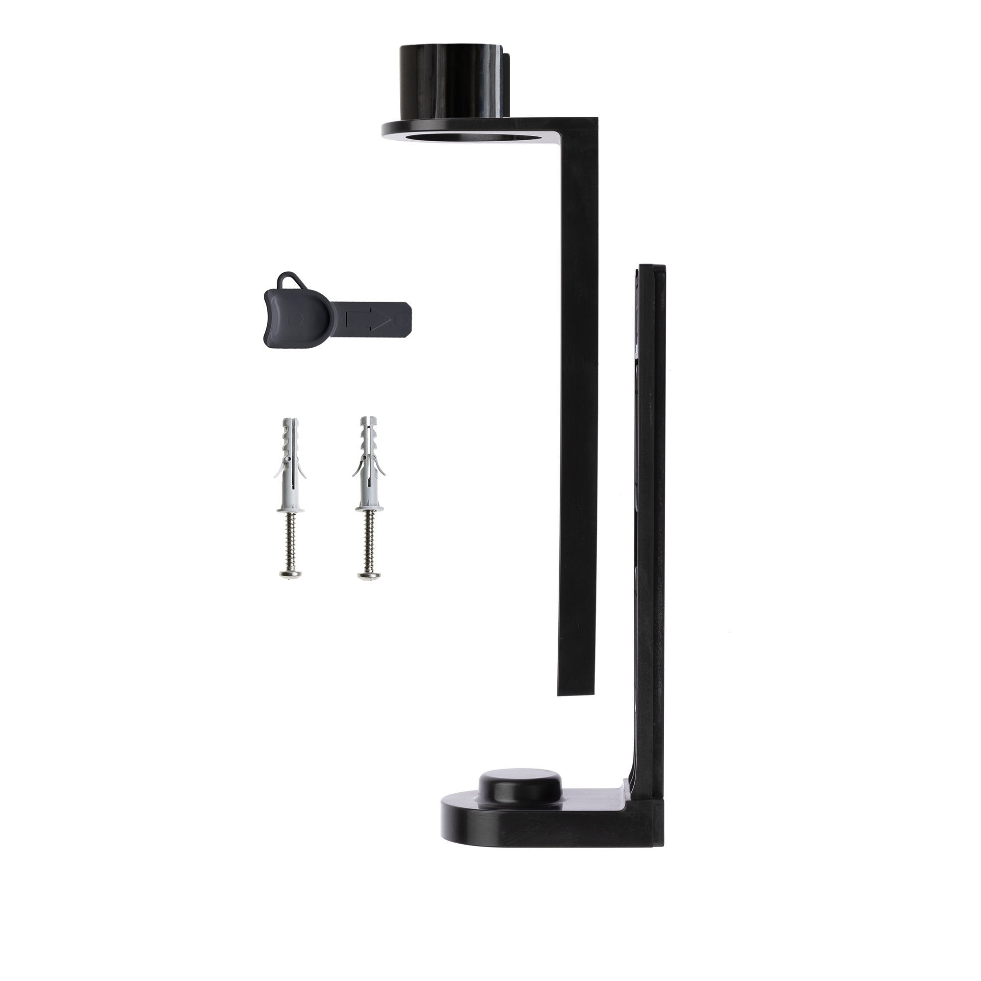 Staffa di supporto antimanomissione per pump dispenser in ABS nero.