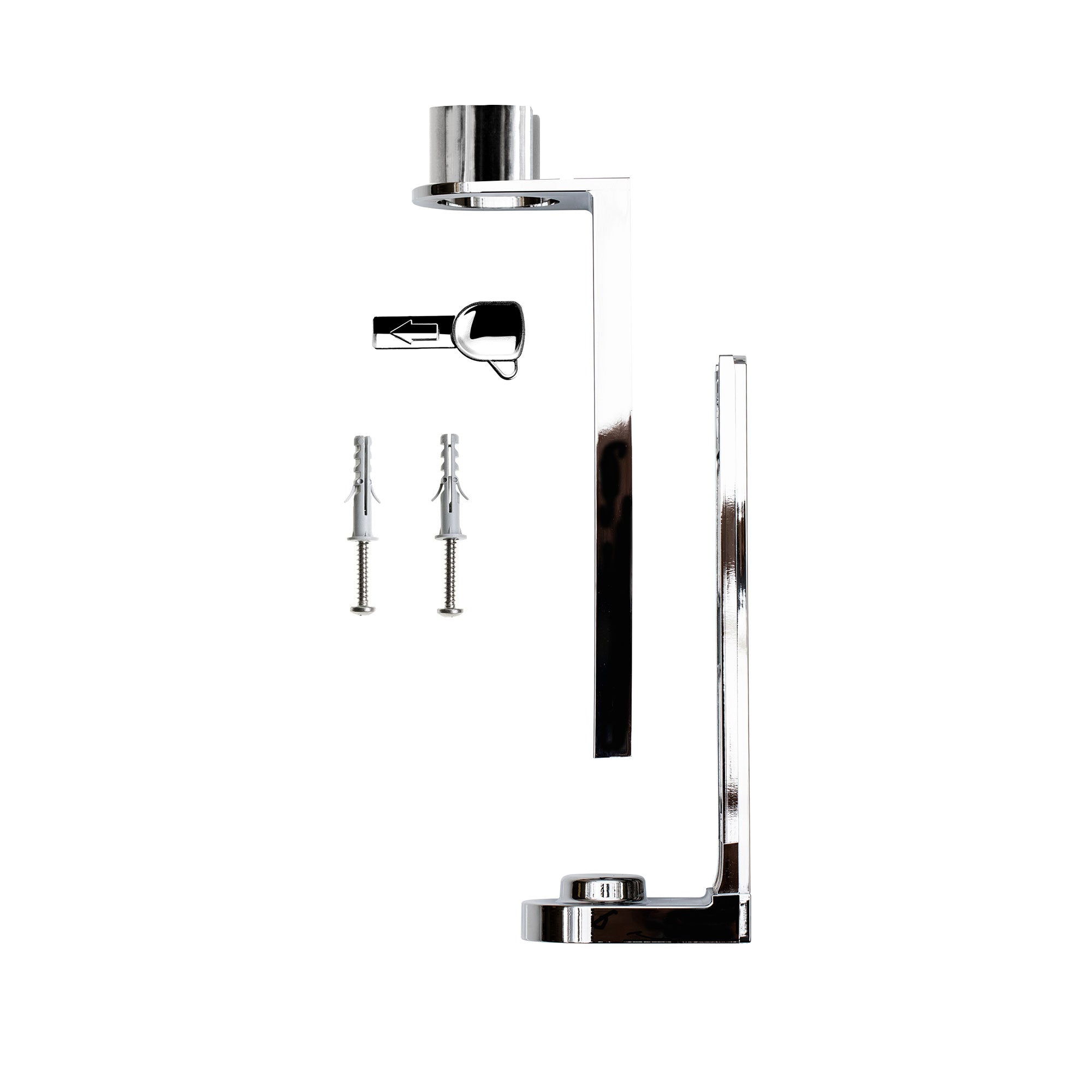 Staffa di supporto antimanomissione per pump dispenser in ABS cromato.