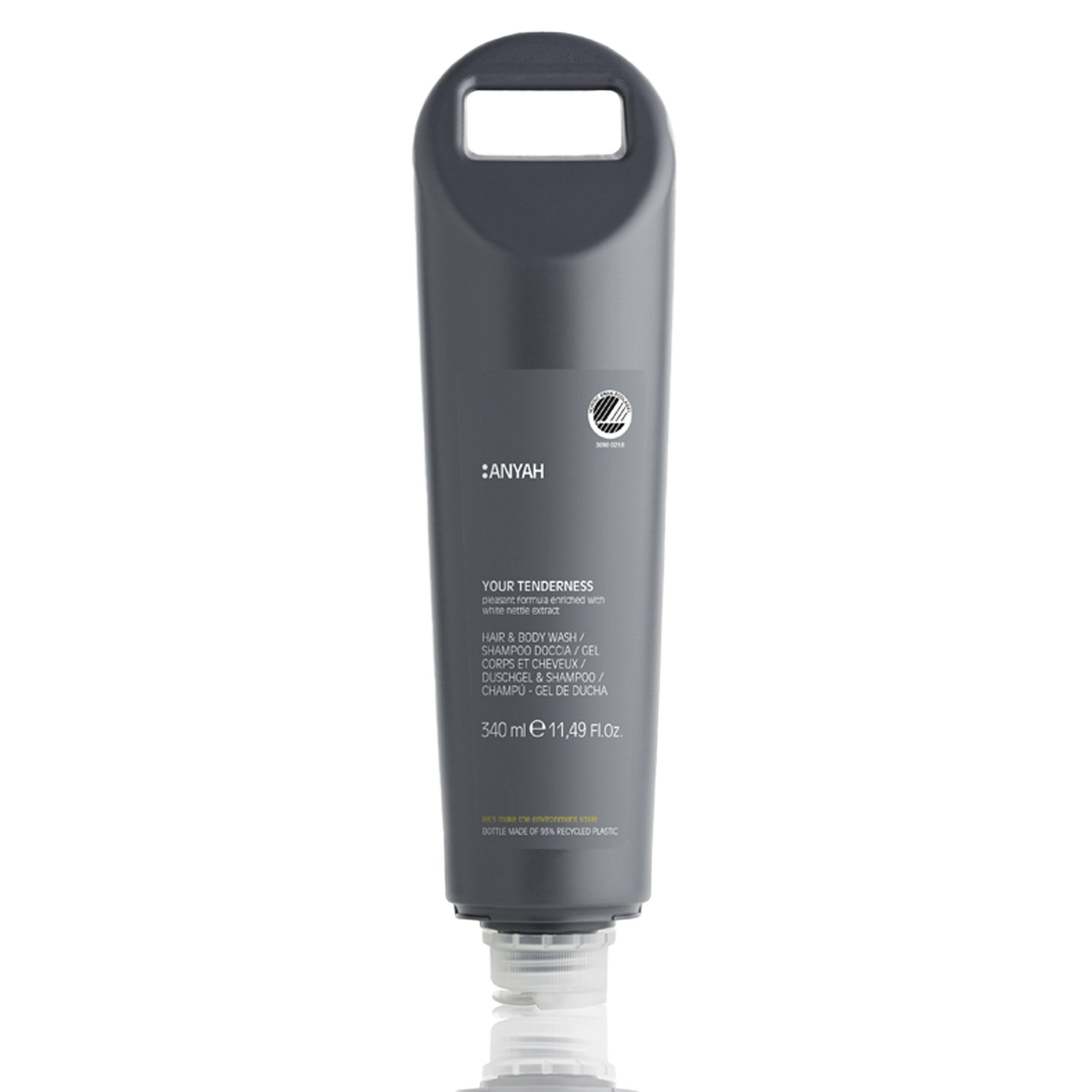 Flacone Anyah in PE riciclato post-consumo al 93% – 340 ml* → 77,5 g di CO₂