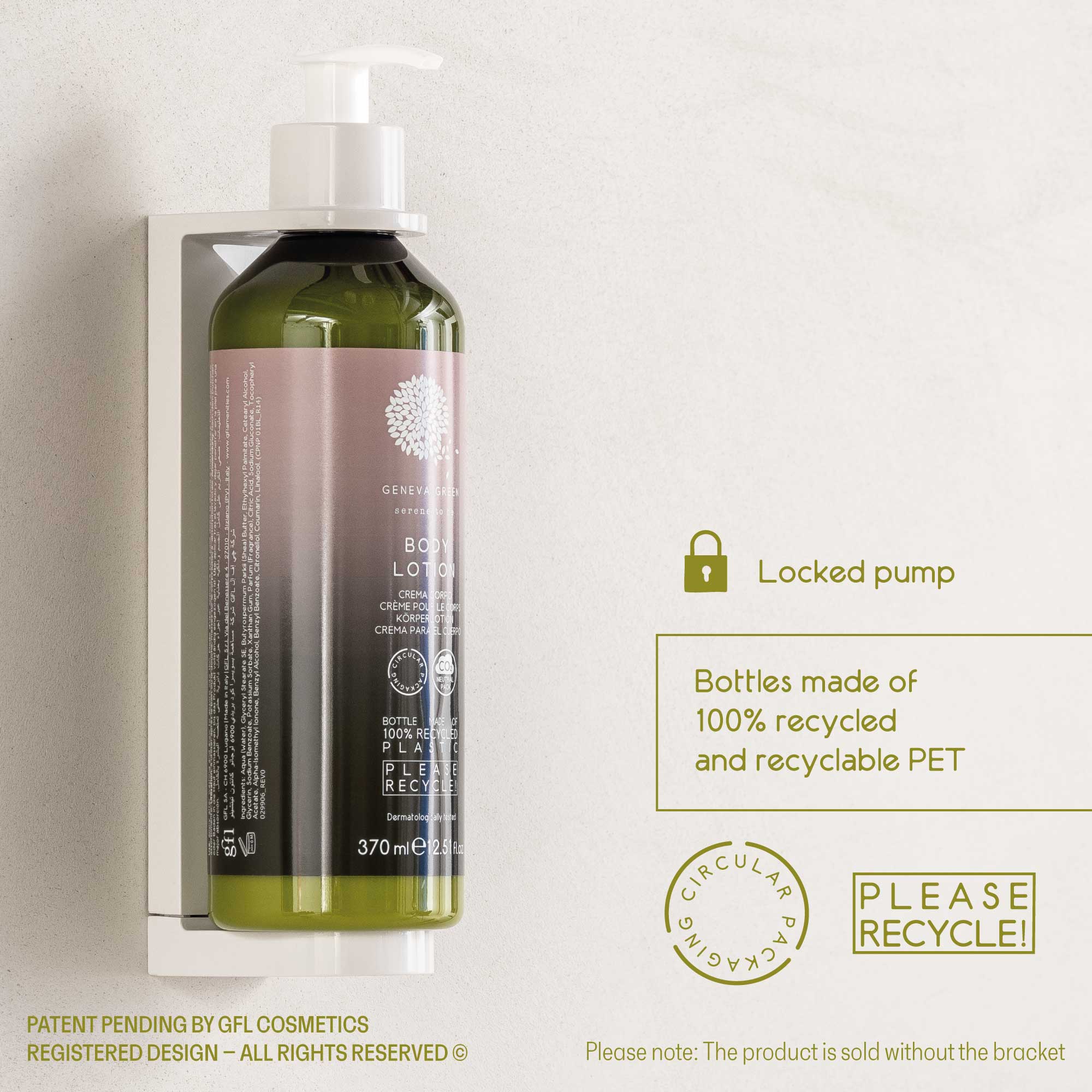Geneva Green body lotion is enriched with vitamin E and Shea Butter.