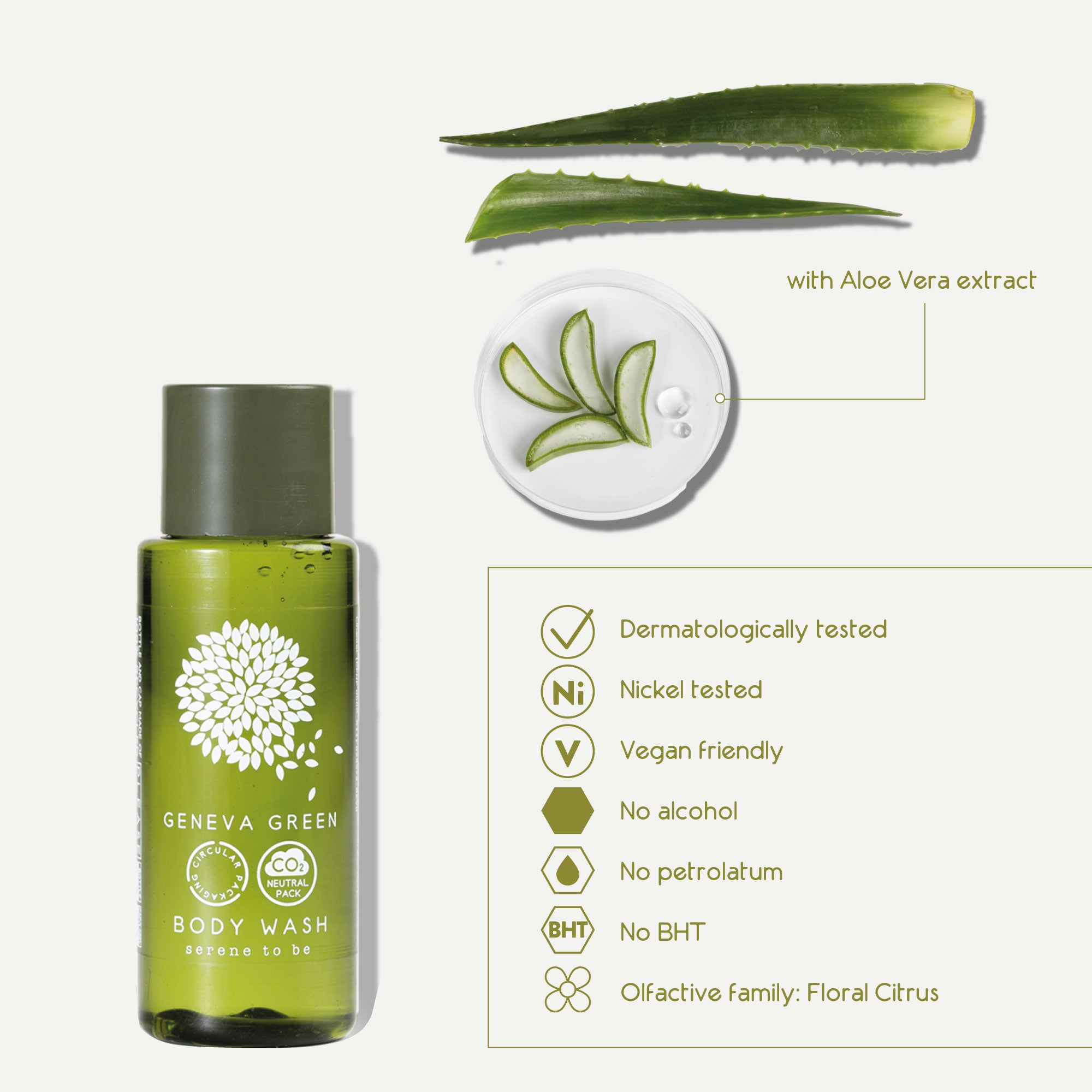 Geneva Green body wash gently cleans the skin, the lightly scented formula is enriched with Aloe Vera extract.