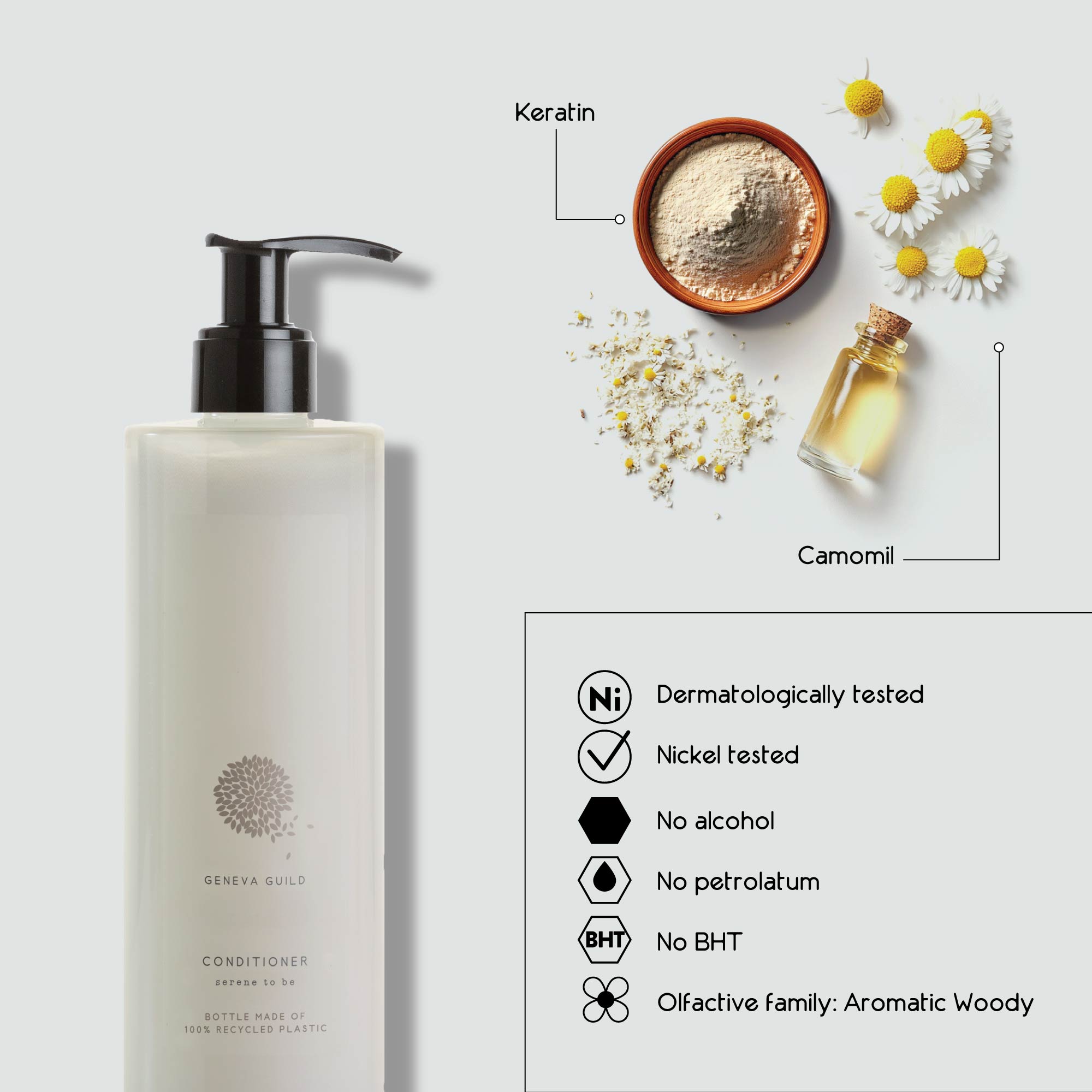 Geneva Guild conditioner is enriched with purified Keratin and Camomile extract.