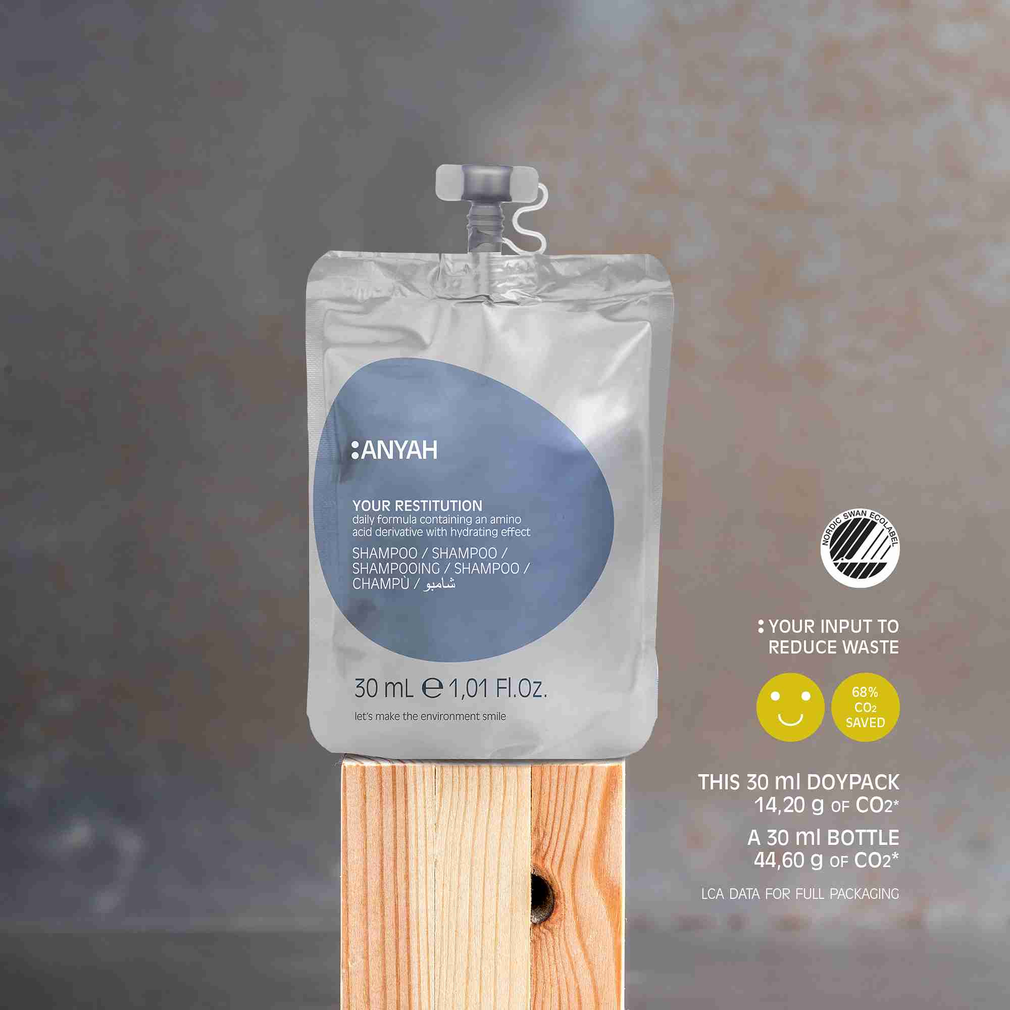 The Anyah range takes into account its environmental impact with a proven Life Cycle assessment shown directly on the label. The Life Cycle Assessment (LCA), is an innovative approach that has allowed us to calculate the environmental impact of Anyah’s packaging along the products entire life cycle.