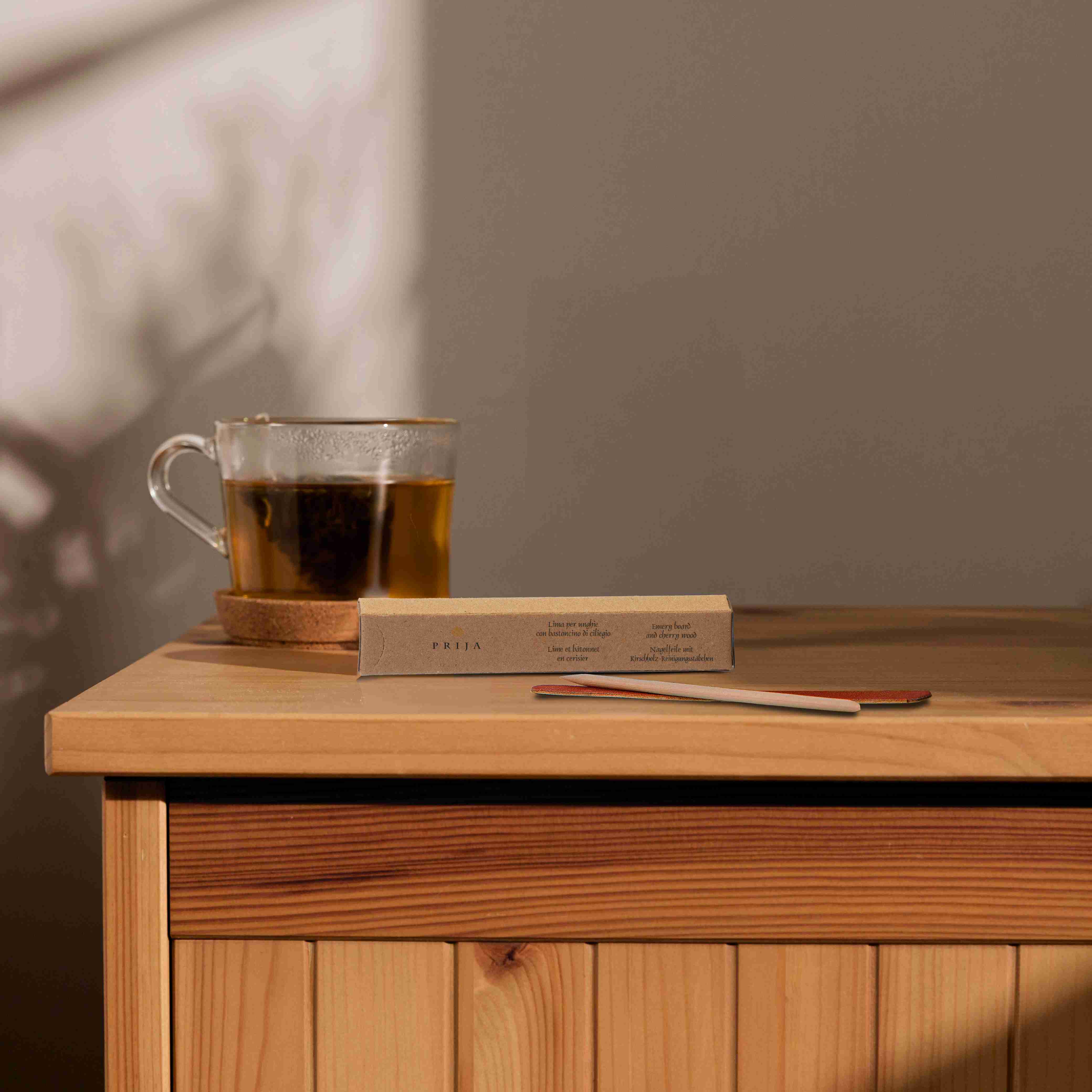 Emery board and cherry wood in recycled paper box sealed with pre-cut.