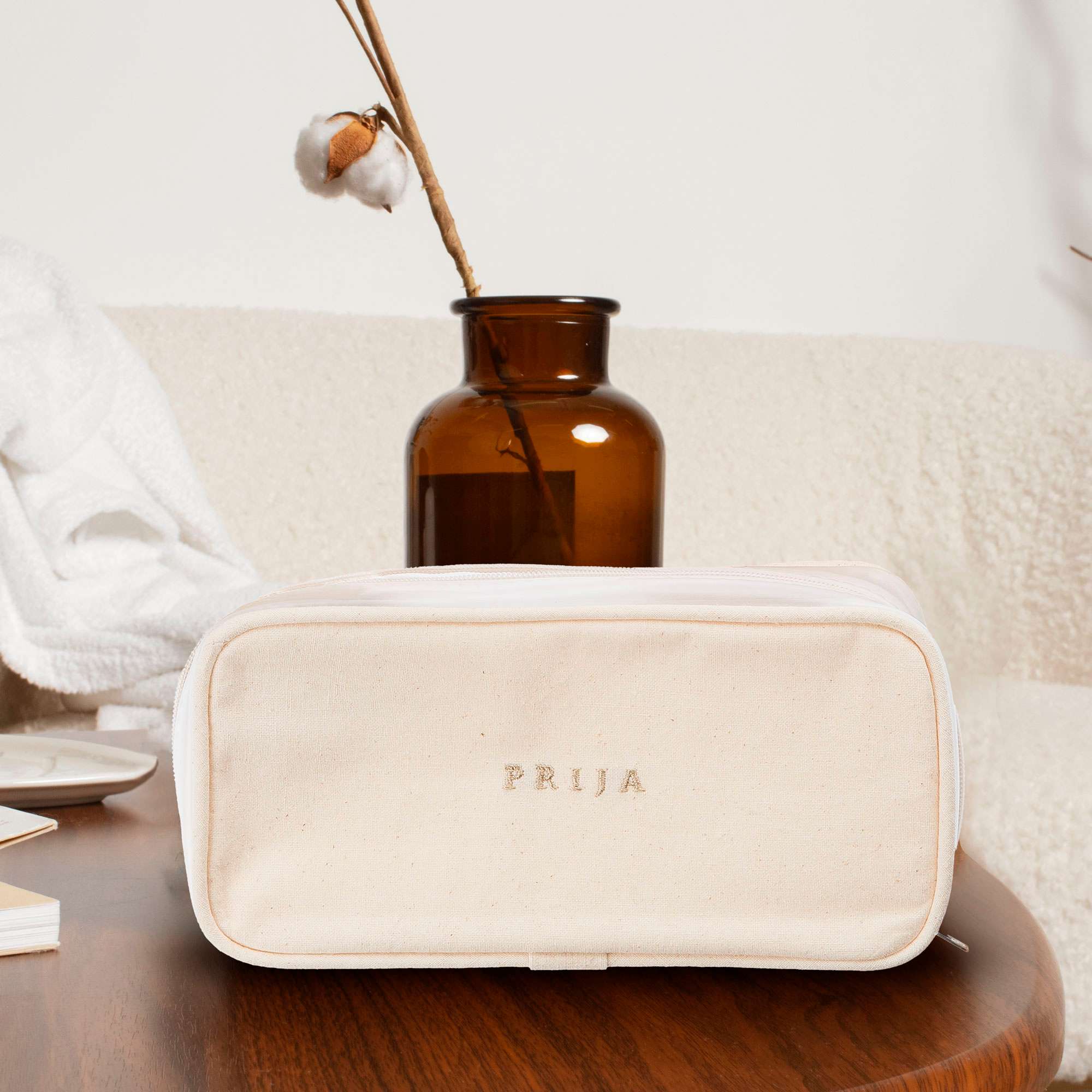 Empty rectangular pouch in ecru natural cotton featuring EVA inserts, offering a perfect balance between aesthetics and functionality.