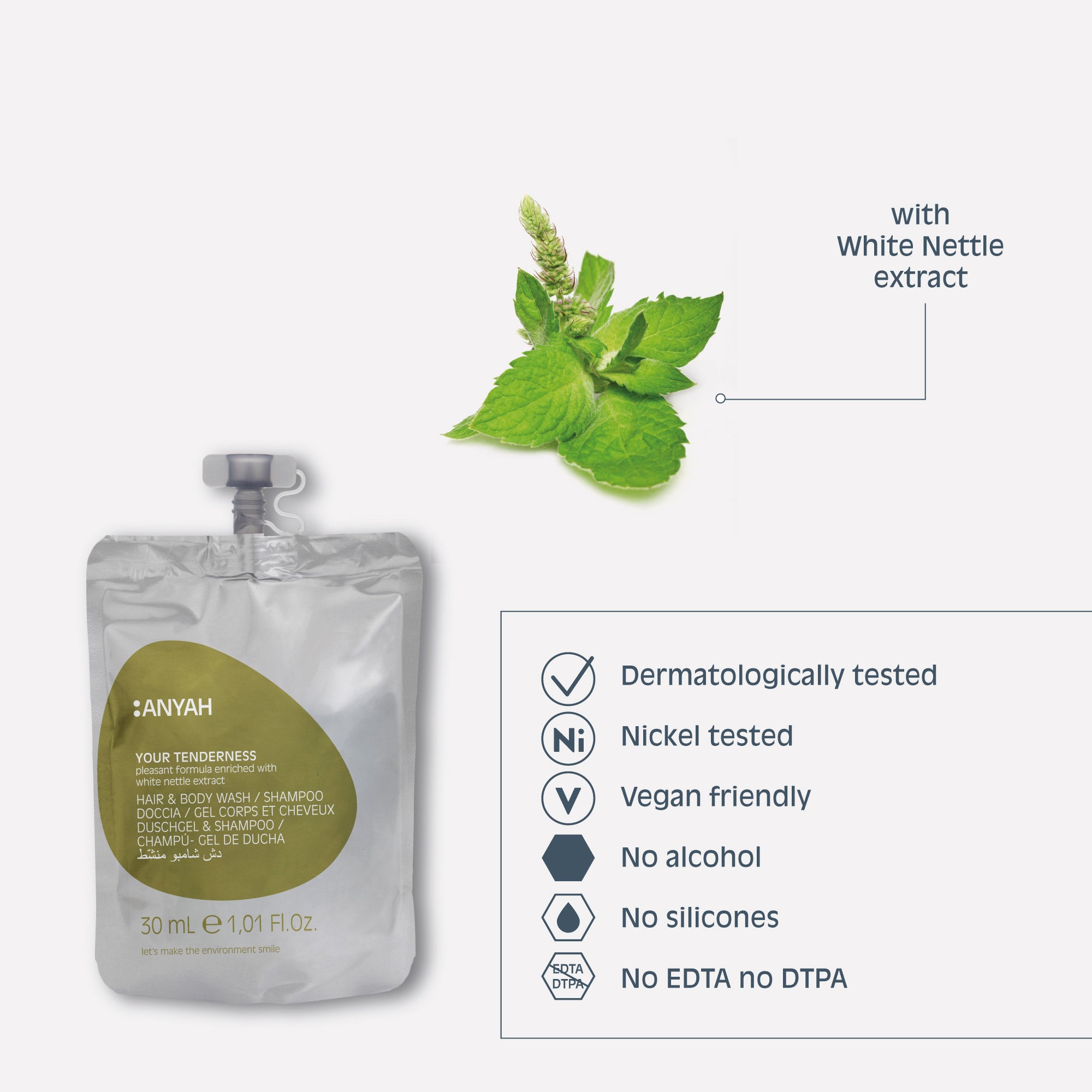 Gentle daily formula all-in-one with white nettle extract, formulated with essentials and active ingredients.