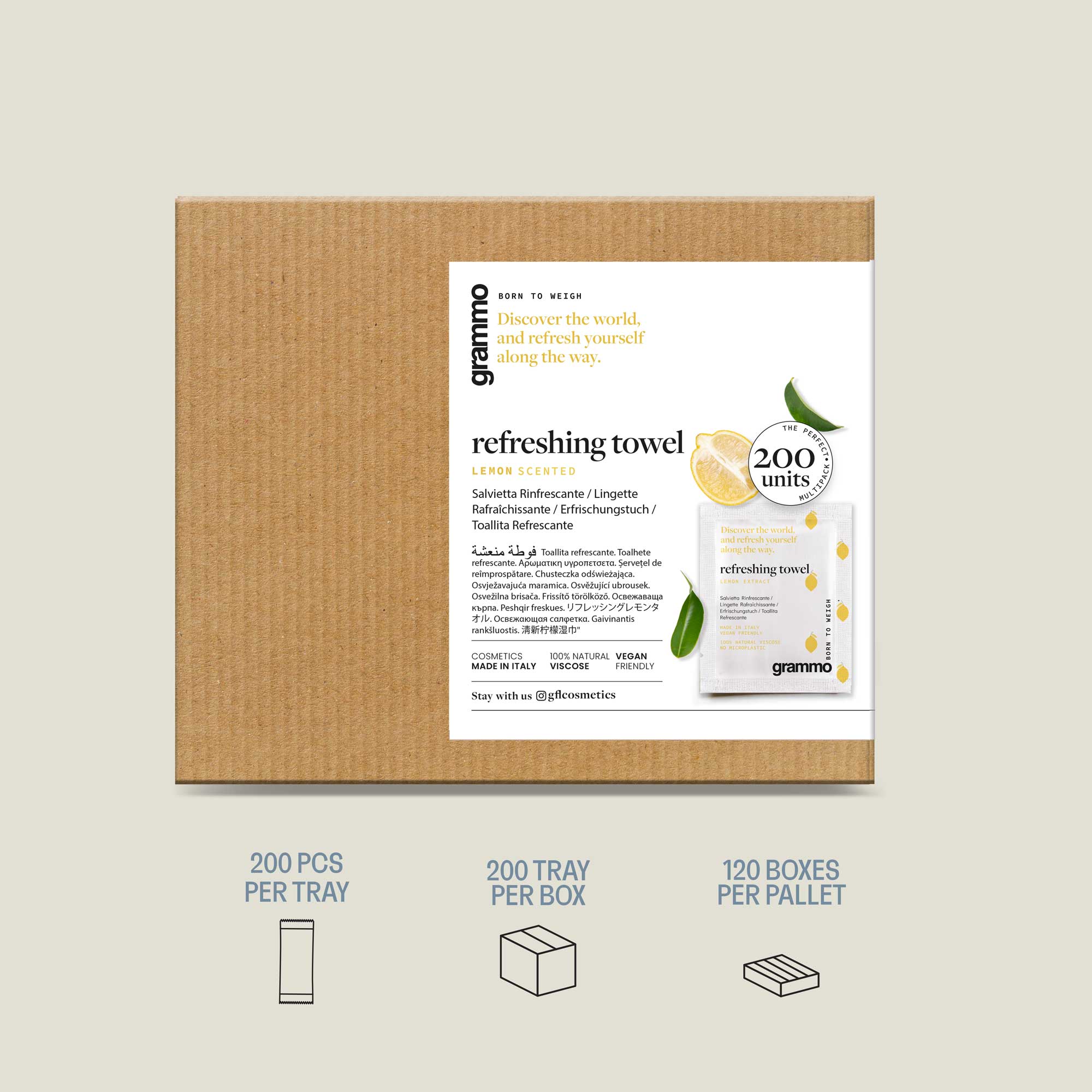 Grammo Refreshing towel with a fresh lemon fragrance