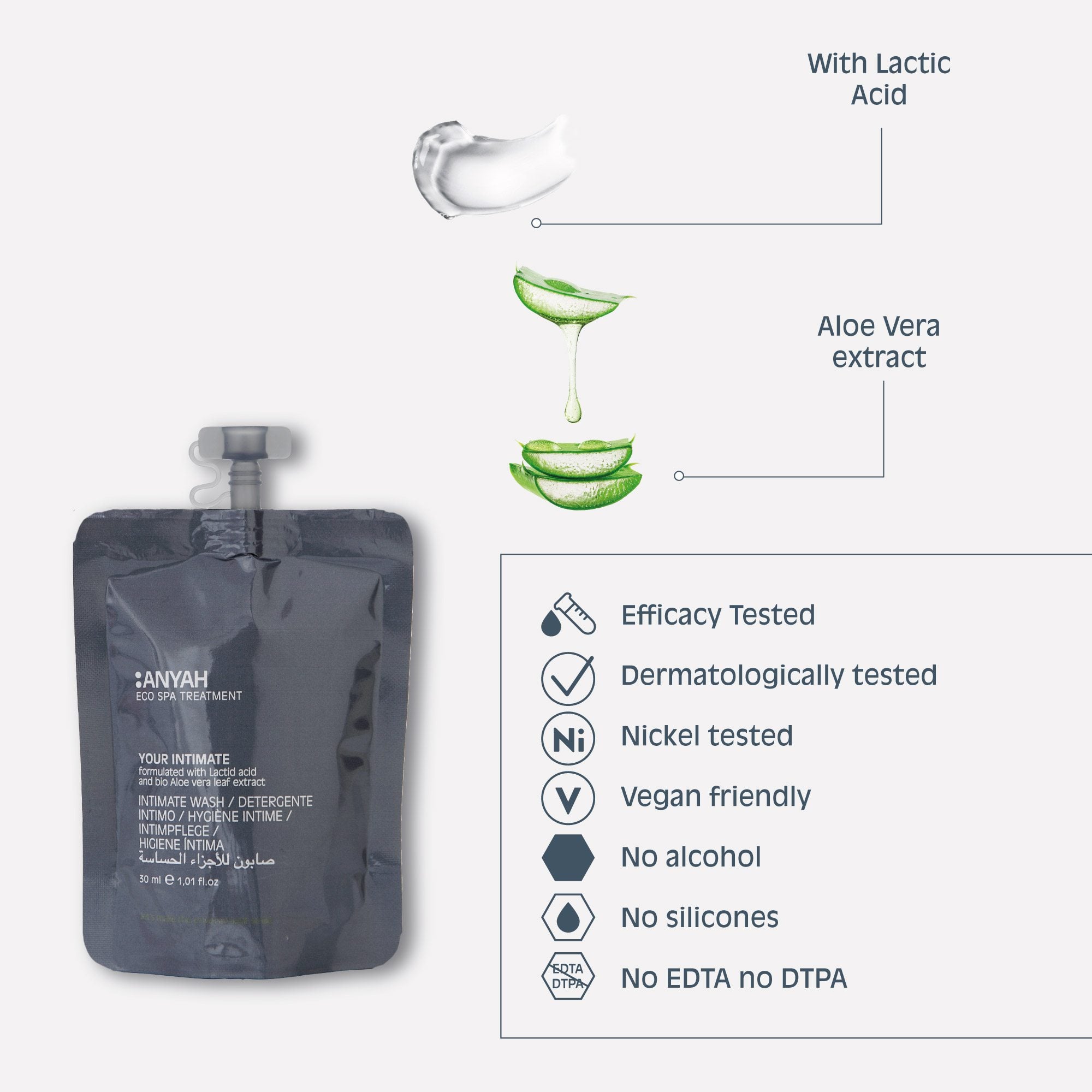 Delicate Intimate wash created for daily use to help maintain the natural pH of the intimate area, formulated with Lactic acid and bio Aloe vera leaf extract.