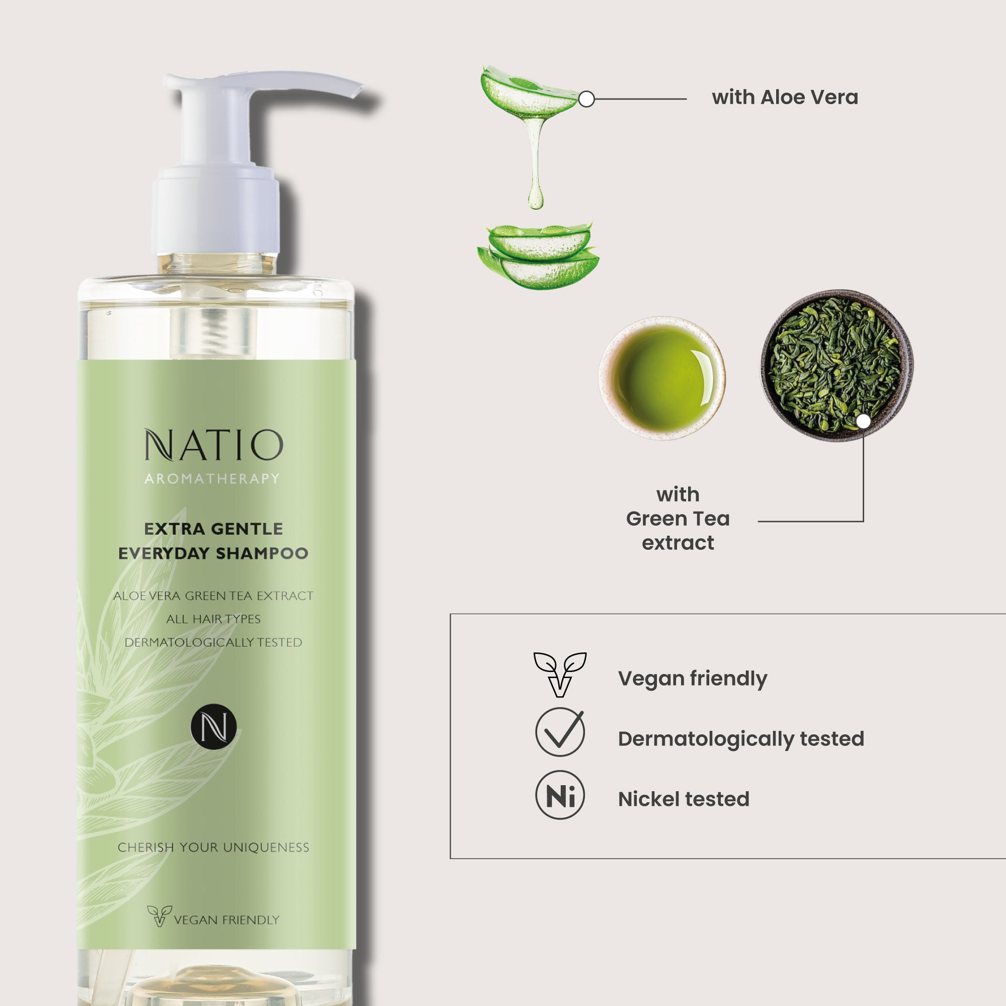 Enriched with Aloe vera and Green Tea extract. Ideal for all hair types.