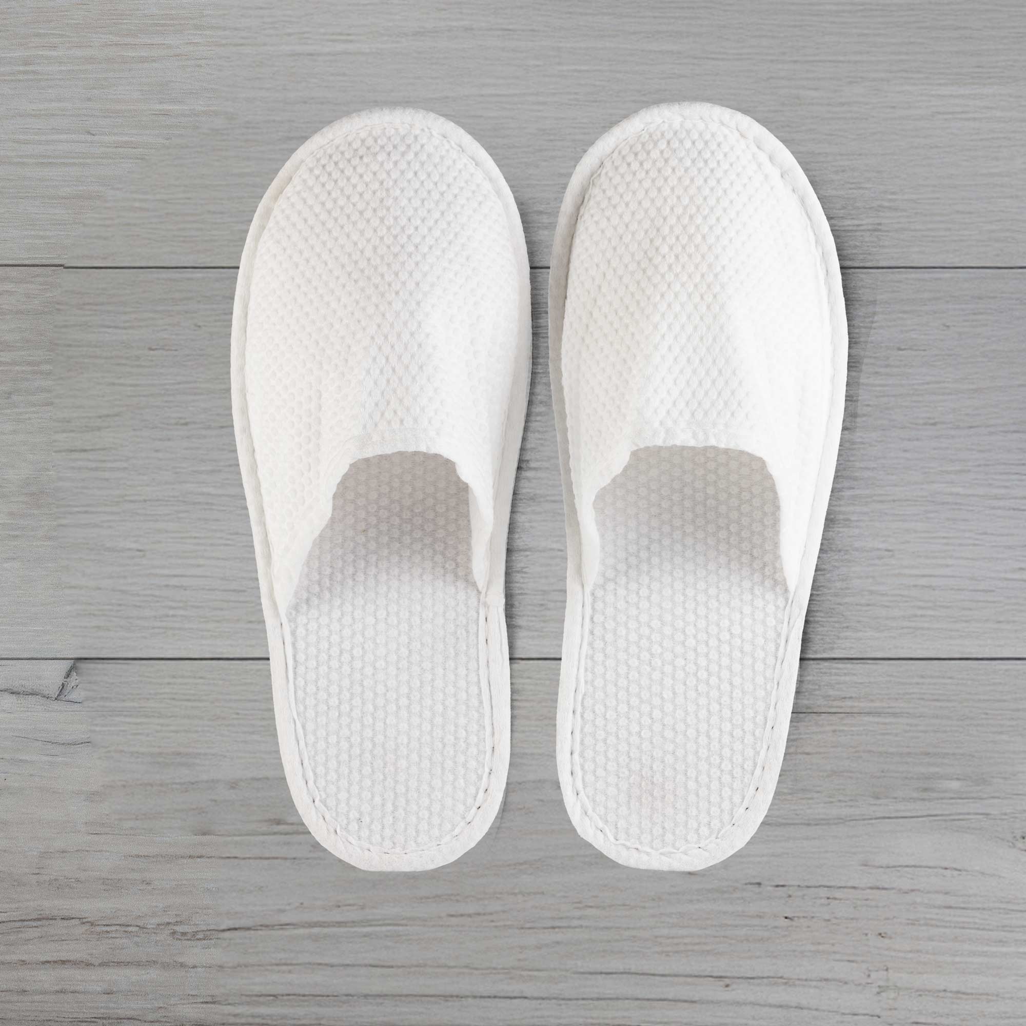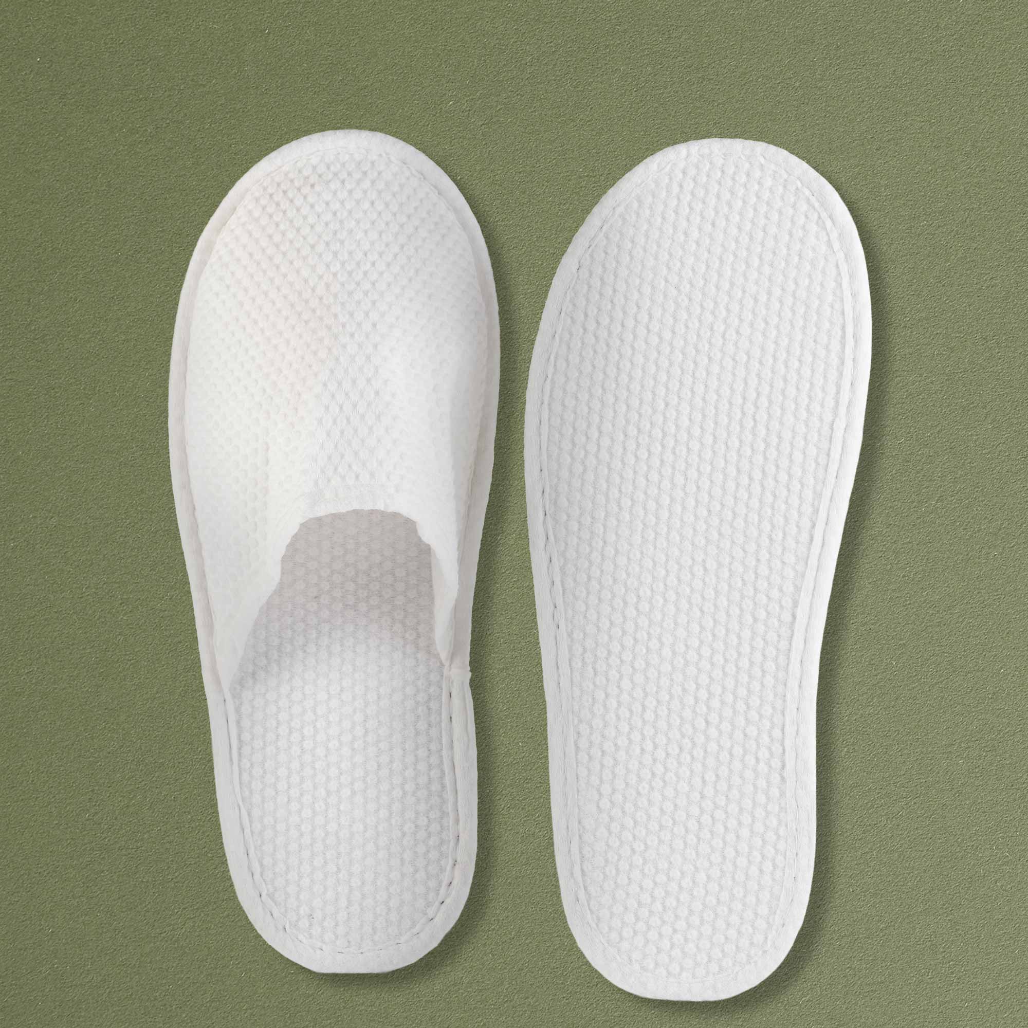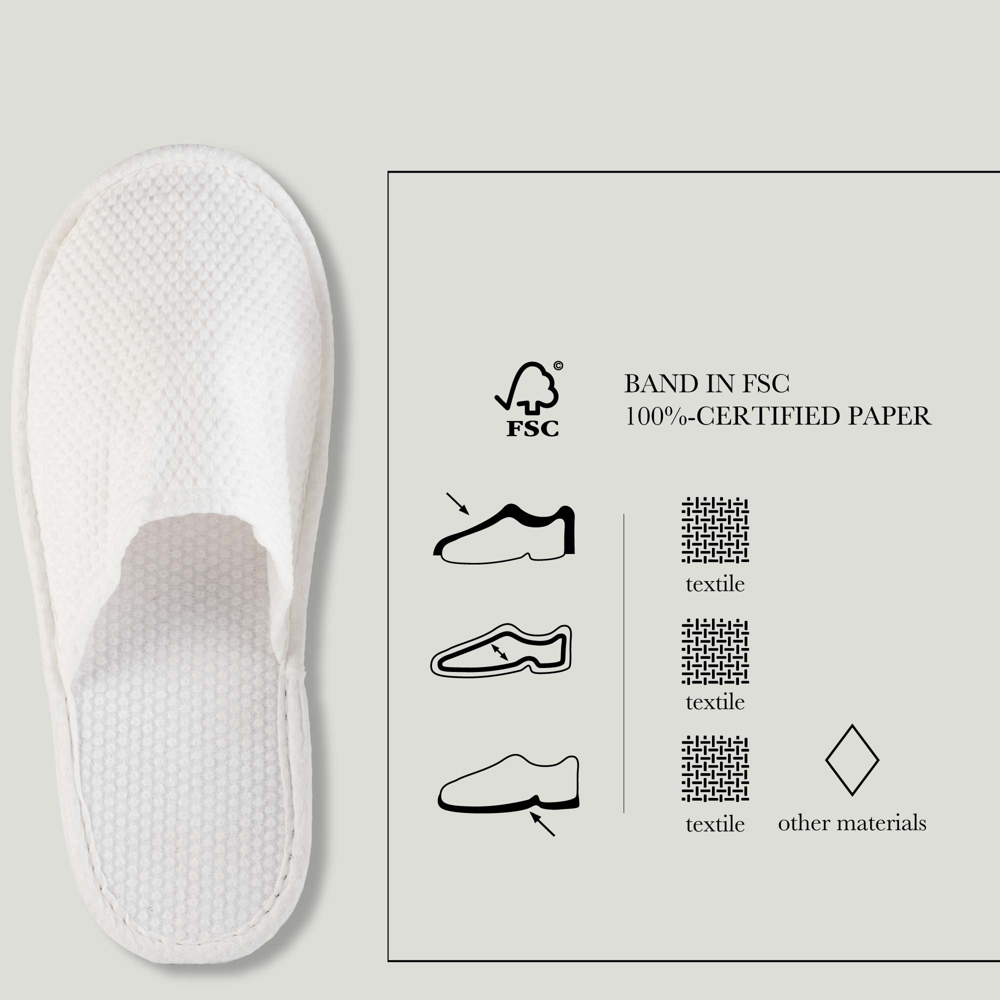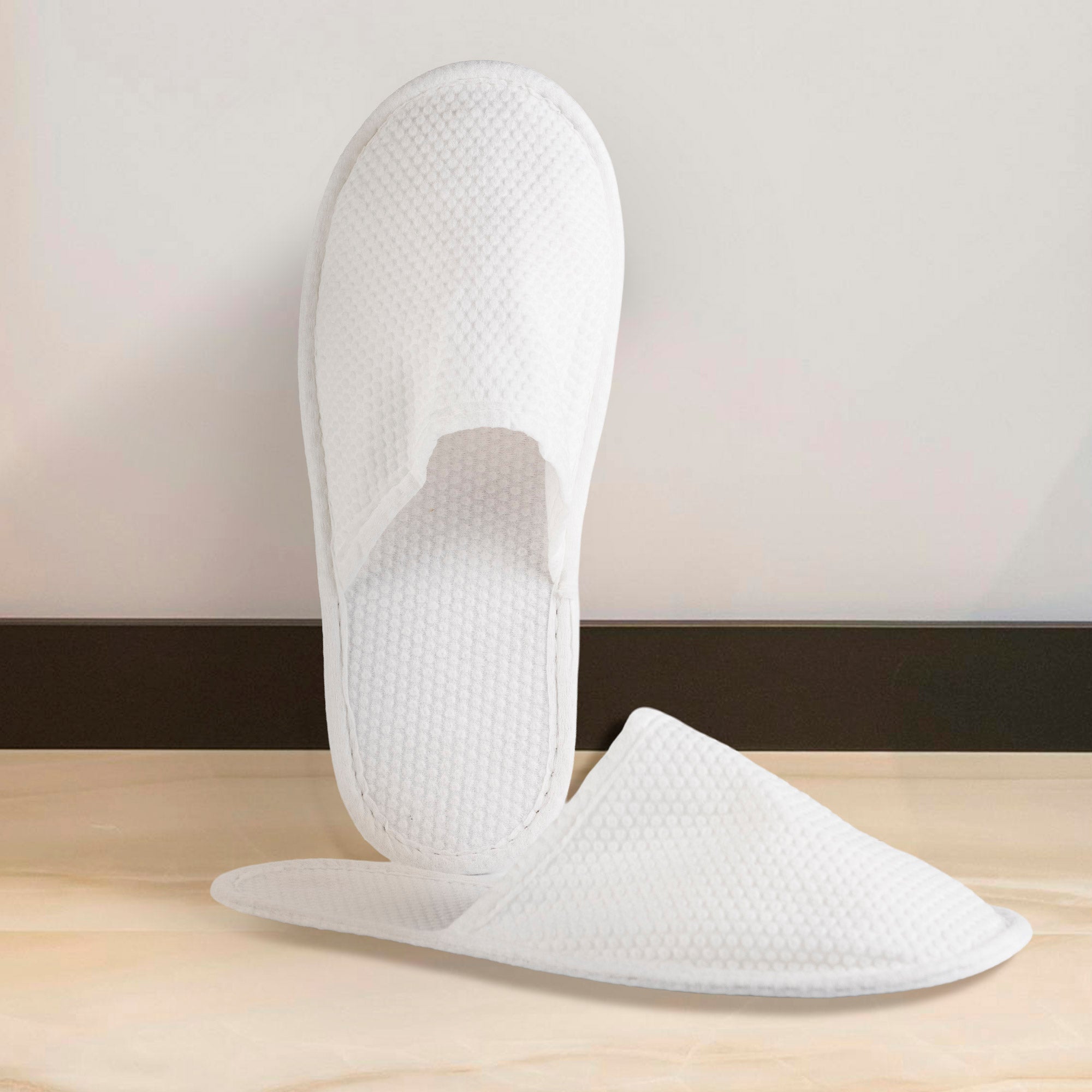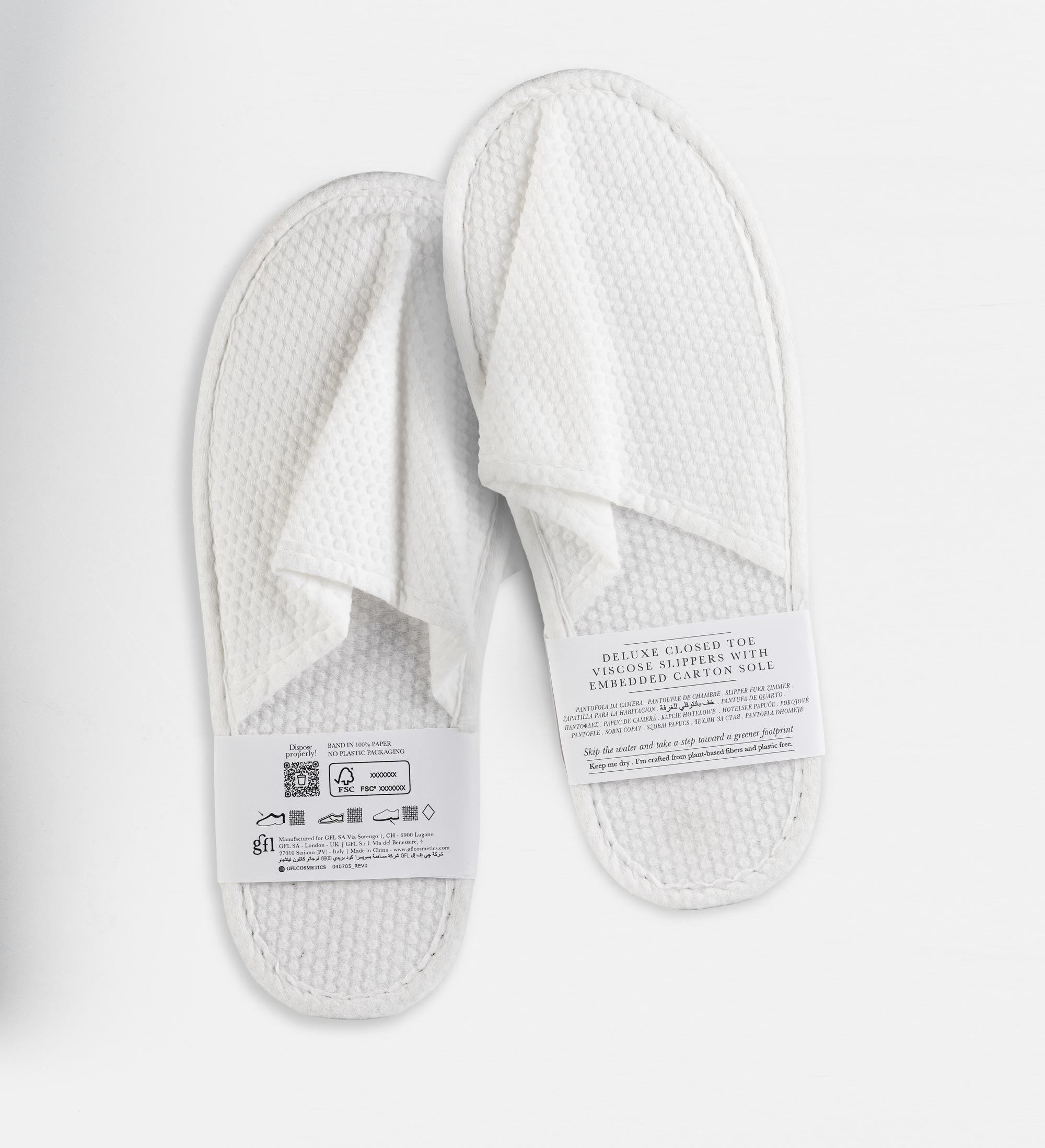 Deluxe closed toe viscose slippers with embedded carton sole.