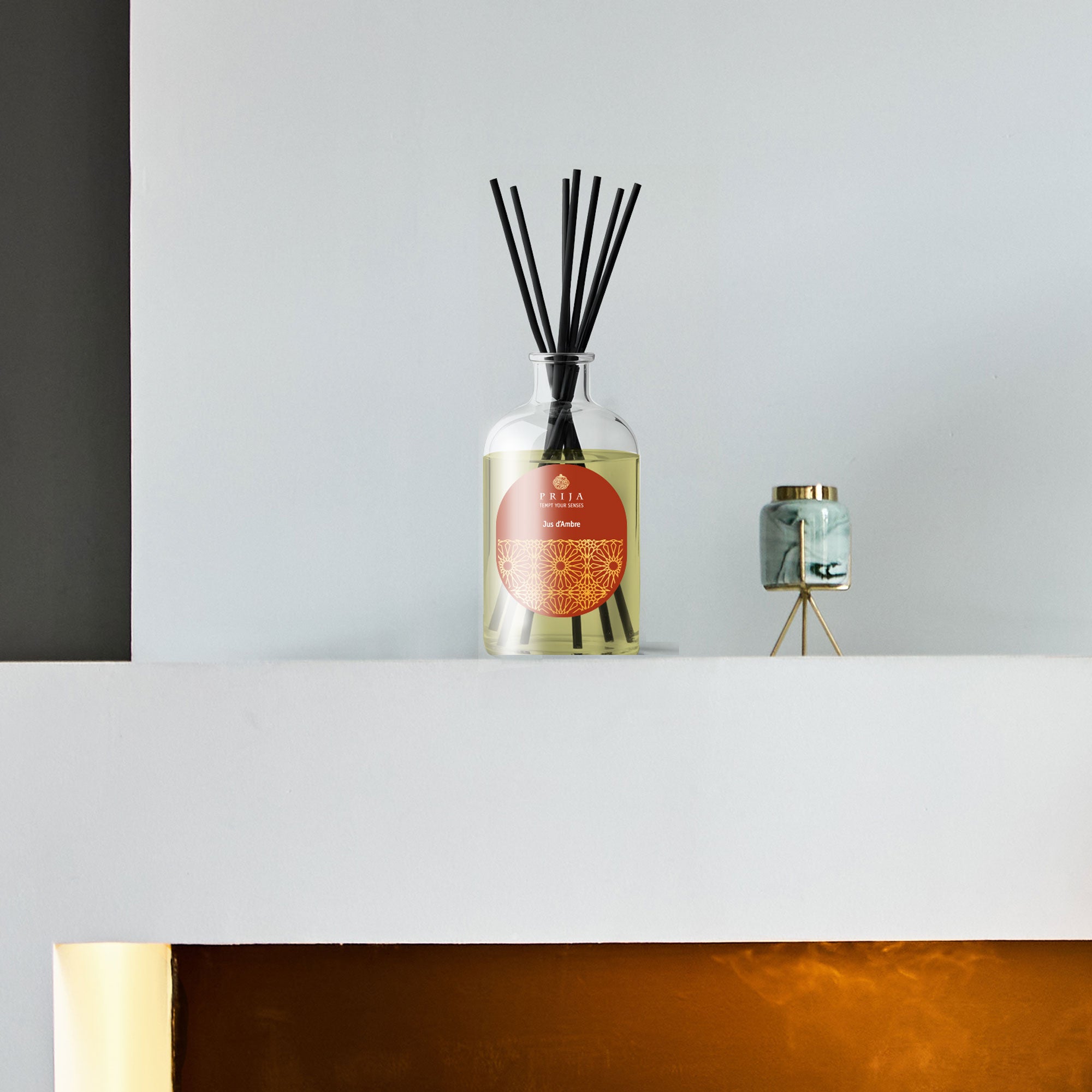 Infused with Jus d’Ambre, Prija’s iconic fragrance, this elegant diffuser transforms any space into a sanctuary of calm and quiet luxury.