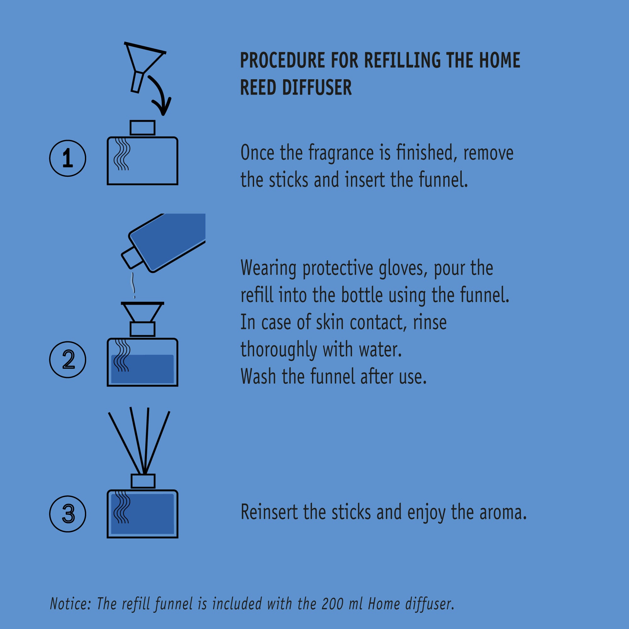 Notice: The refill funnel is included with the 200 ml Home diffuser.
