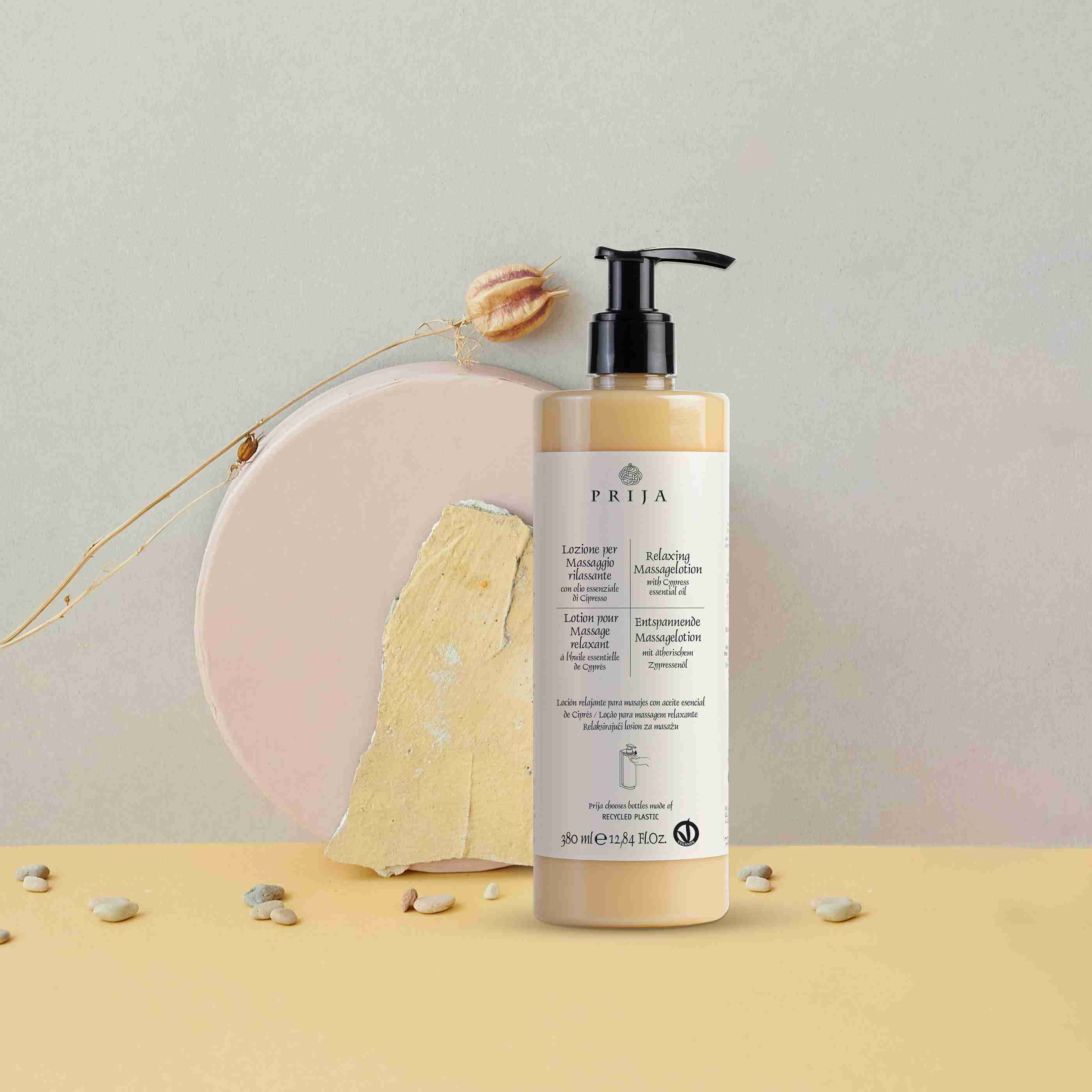 and relaxing atmosphere, is wisely combined with the balsamic notes of Cypress essential oil, with its toning virtues.