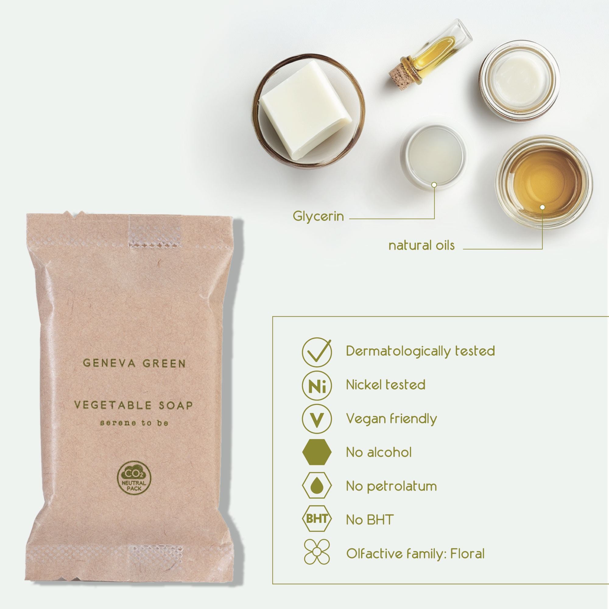 Geneva Green vegetable soap is the ideal body care bar to use on a daily basis. Its gentle cleansing action can be used all over the body to leave the skin clean and refreshed.