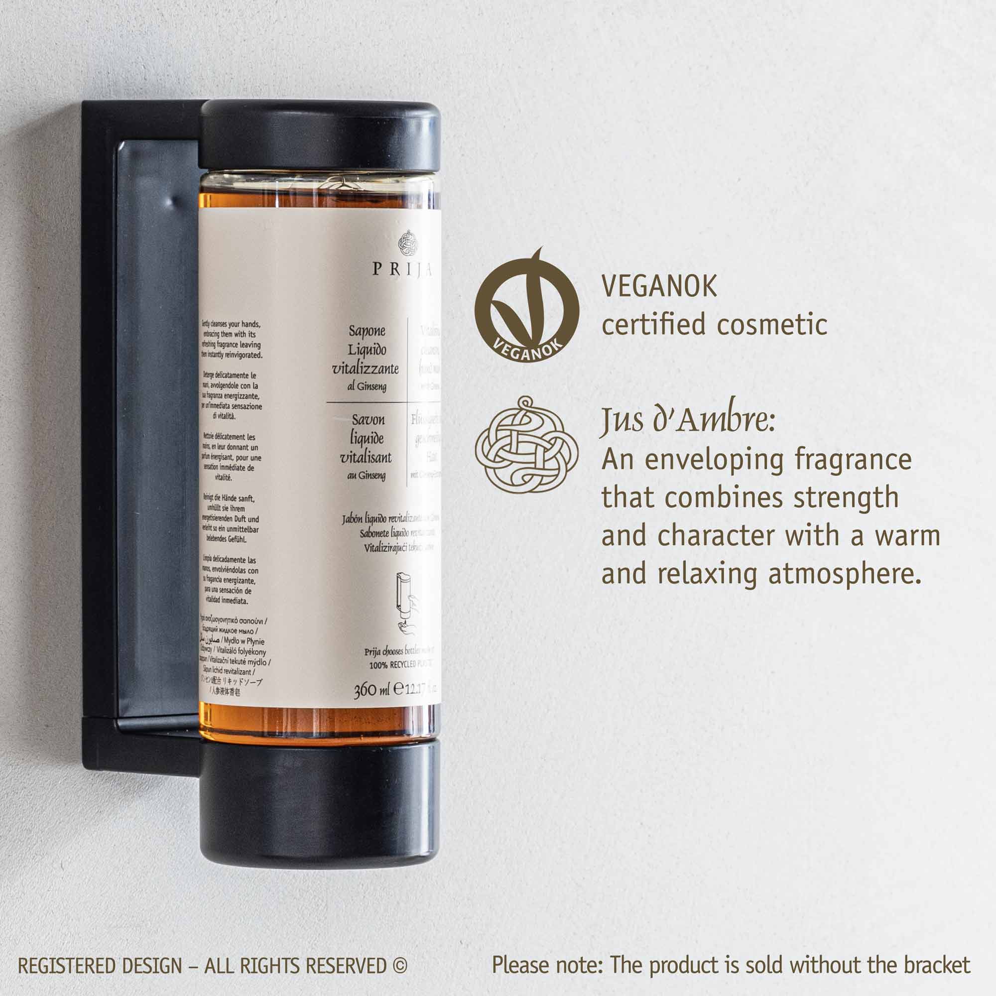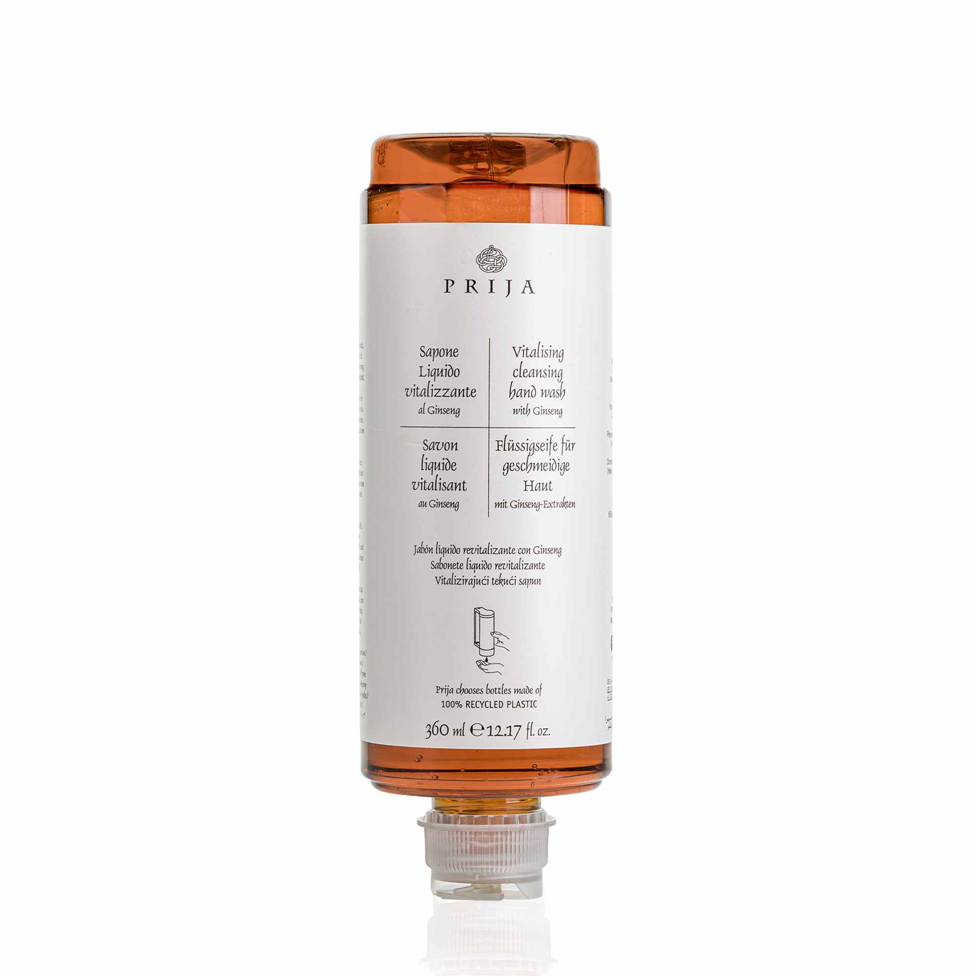 Liquid hand soap with Ginseng for daily hygiene. Gently cleanses the hands, with the enveloping fragrance of Prija, for an immediate sensation of vitality and well-being.