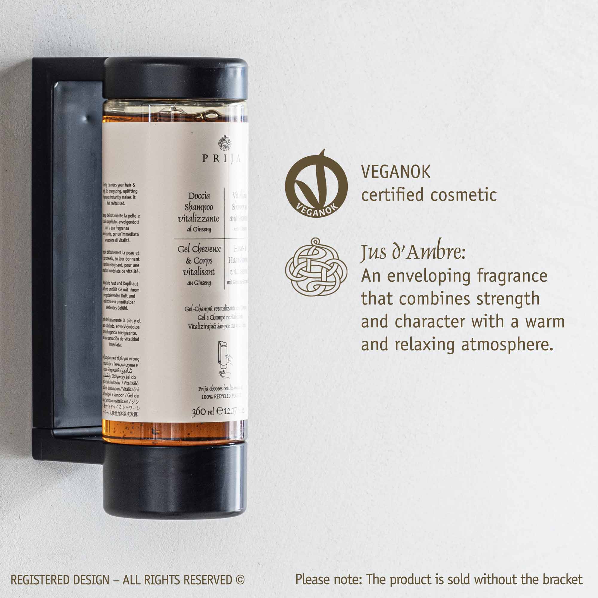 Vitalising body and hair cleanser with Ginseng. Gently cleanses the skin and scalp with the enveloping fragrance of Prija, with an immediate sensation of vitality and well-being all over the body.